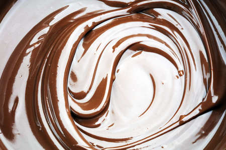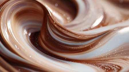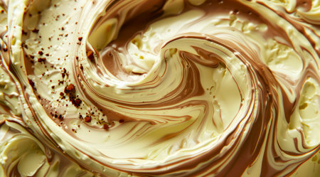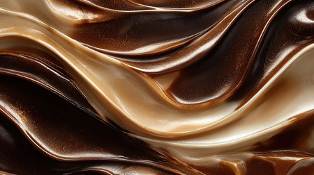 Swirl of creamy chocolate and vanilla texture in abstract wave pattern
