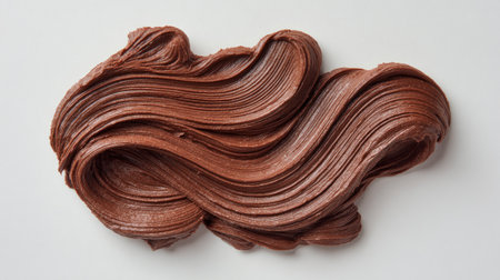 Top-down perspective of a rich chocolate paste spread across a plain background. Ideal for sweet treat and dessert photography.