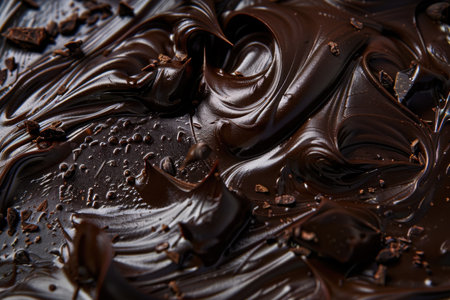 Explore the allure of silky melted chocolate, featuring rich textures and chunks, ideal for dessert-themed projects and culinary delights. Perfect for food photography.