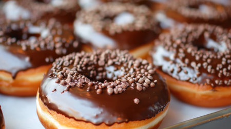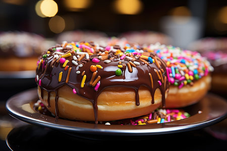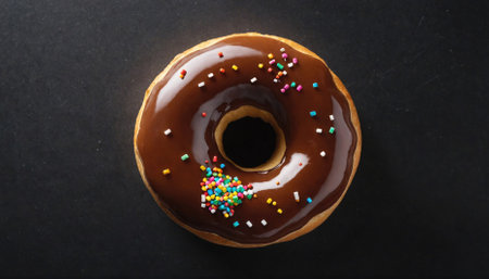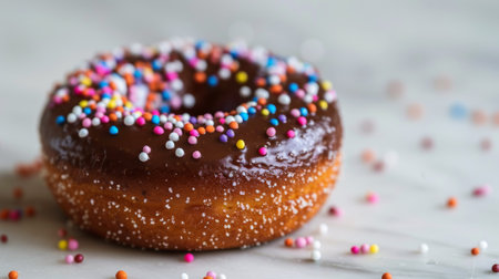 Tempting Chocolate Donut with Sprinkles Glazed to Perfection on a Table
