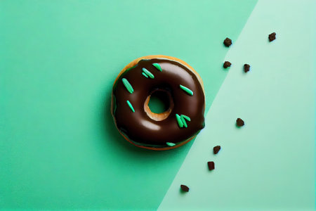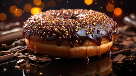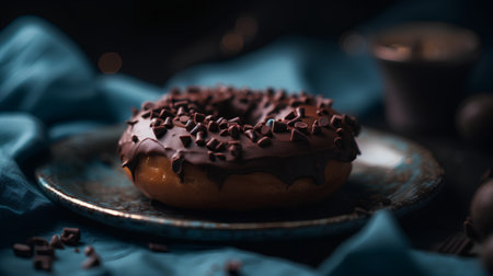Chocolate donut with colorful sprinkles. Deliciously tempting, generative AI