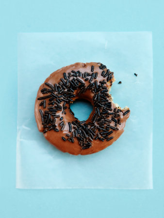 Eaten delicious chocolate donut with Sprinkles Isolated on White Background