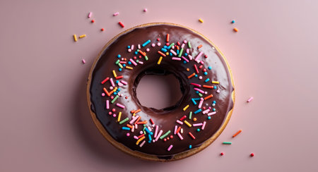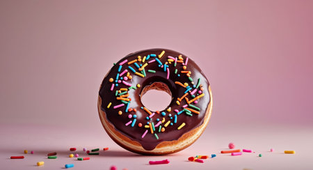 AI Generated. Delicious Chocolate Donut with Sprinkles on Pink Background
