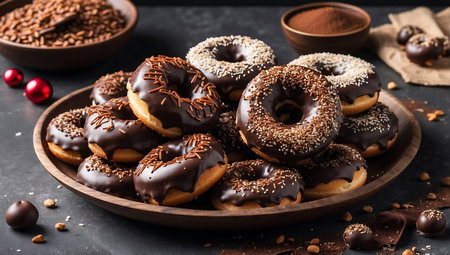 AI Generated. Chocolate glazed gourmet vegan donuts with sprinkles
