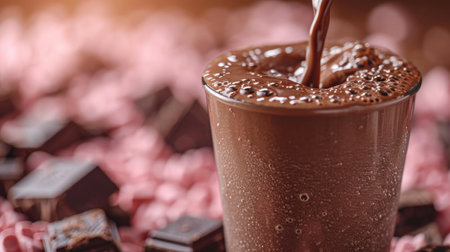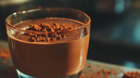 AI Generated. Rich chocolate drink served in a clear glass with a smooth texture and inviting color perfect for dessert or a refreshing snack