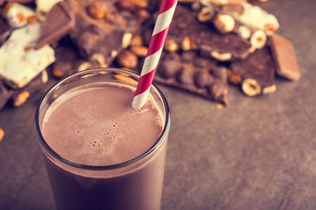 chocolate smoothie, sweet and cold drink, made with cow's milk and strawberries, very nutritional.