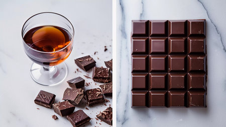 Immerse yourself in the sheer elegance of savoring a smooth whisky alongside a selection of luxurious chocolates. This image captures the rich amber hue of the whisky, perfectly complemented by the deep, velvety tones of the premium chocolate pieces. Experience a taste of refinement with every sip and bite, a delightful journey for the senses.