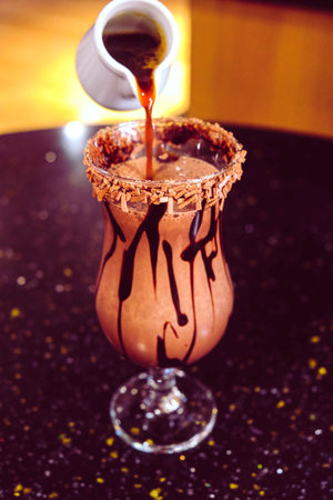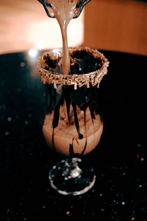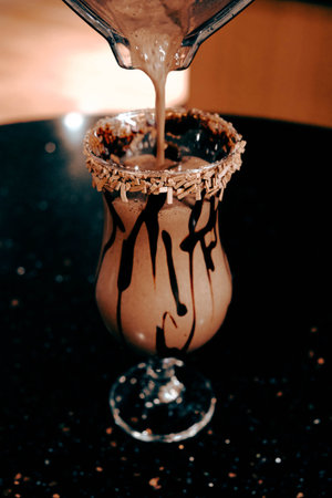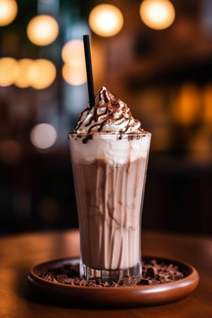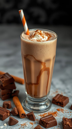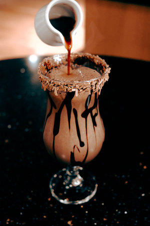 Generative ai. Chocolate milkshake with chocolate decor. High quality illustration