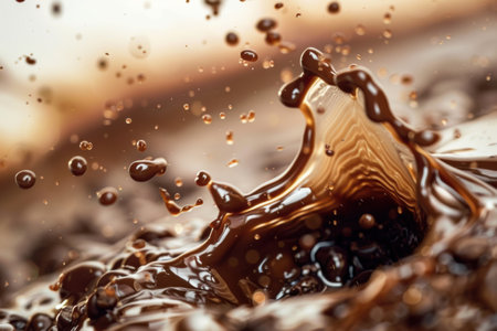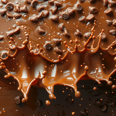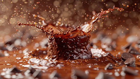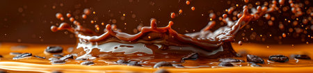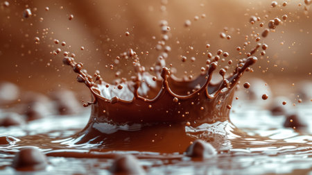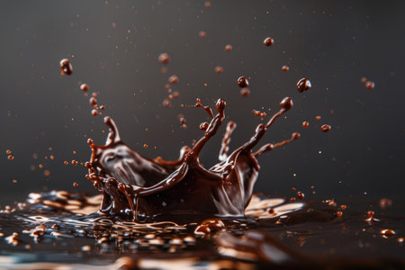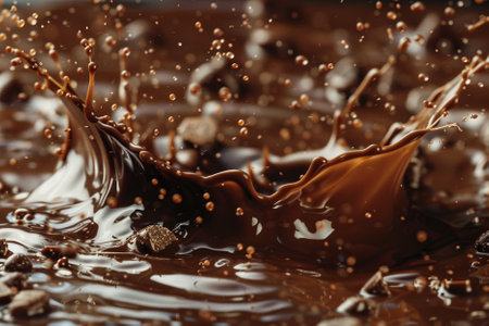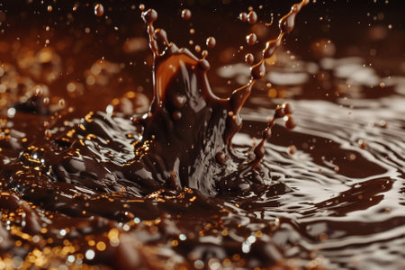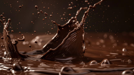 A dynamic close-up of chocolate splashing, capturing the rich texture and movement of the liquid.
