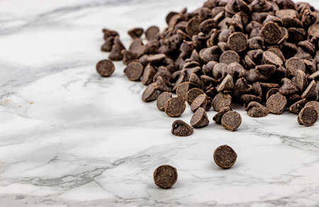 Chocolate chips on a marble slab. Calgary, Alberta, Canada
