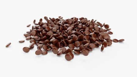 Many chocolate chips on white background 3d illustration