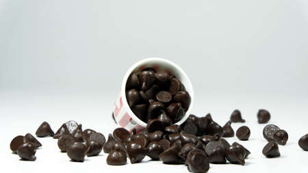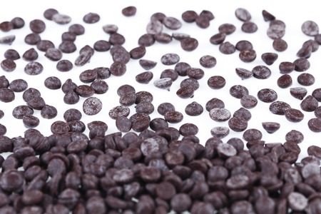 Chocolate chips isolated on white background with copy space for your text.