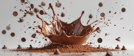 AI Generated. Creamy Chocolate Splash Explodes with Cocoa Powder and Chocolate Chips Dynamically