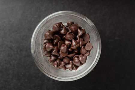 heap of dark chocolate chip in glass