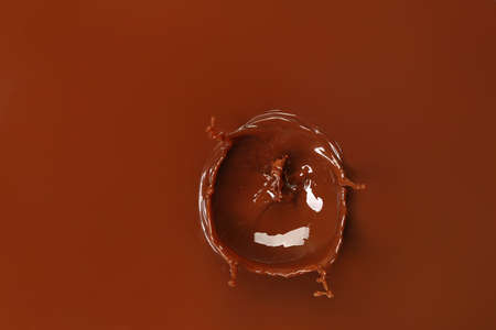 splash of hot chocolate on a brown background, close-up
