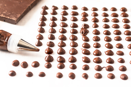 Food concept making homemade chocolate chips for bakery on white background