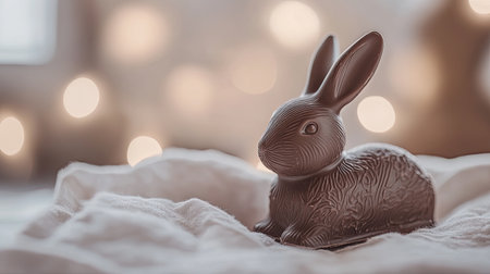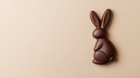 A delightful chocolate bunny figurine sits on a soft beige background, perfect for Easter celebrations and sweet indulgences. Ideal for festive imagery.