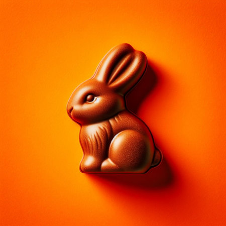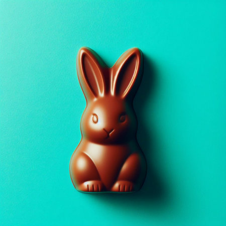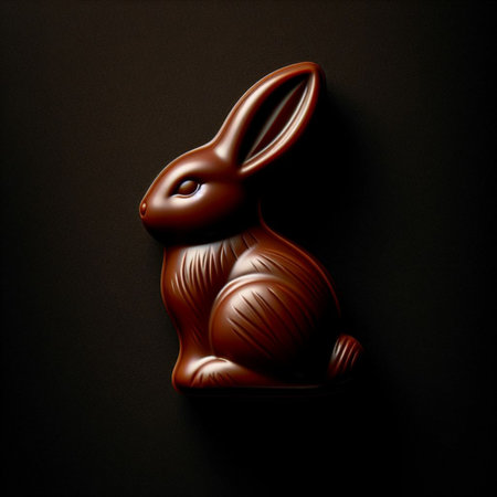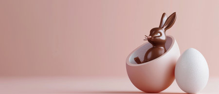 profile chocolate rabbit with ample negative space, clean composition and soft shadow, ideal mockup for branding and product placement. Minimalist styling and versatile layout for promotional banners.