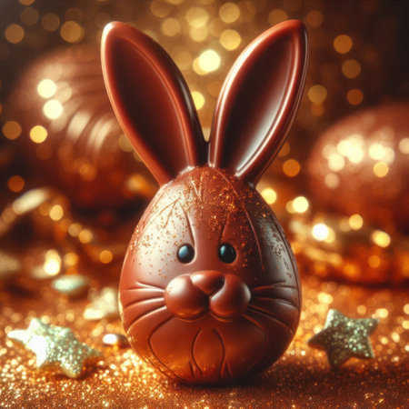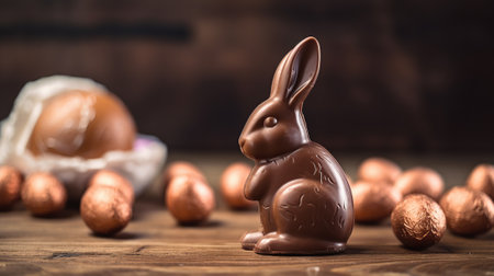 Festive Easter chocolate bunny. Sweet chocolate rabbit. easter holiday background