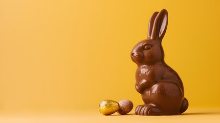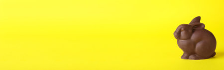 chocolate easter bunny rabbit isolated on yellow background wit a lot of copy space. High quality photo