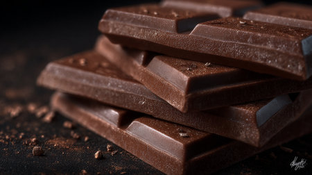 Delectable Stack of Rich Dark Chocolate Blocks on Dark Brown Surface