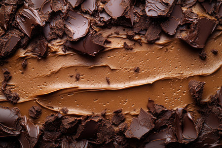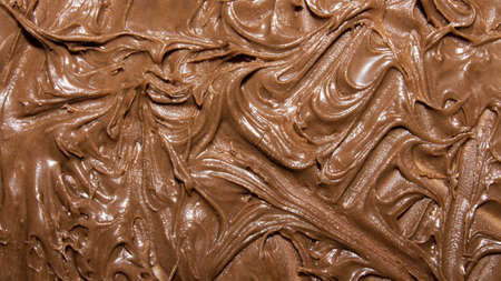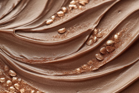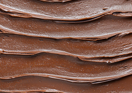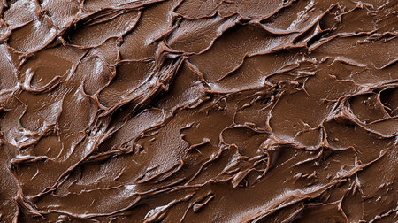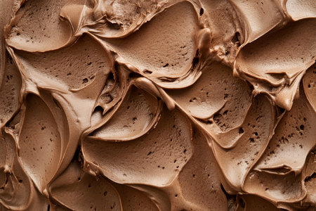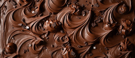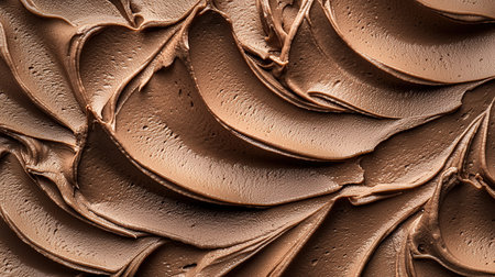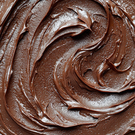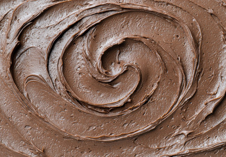 A close-up view of rich and smooth chocolate cream spread offers a stunning visual with textured swirls that enhance culinary creativity for dessert preparation.