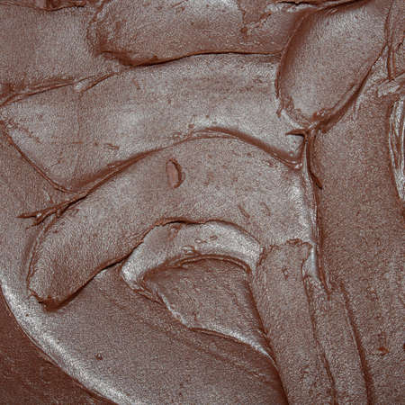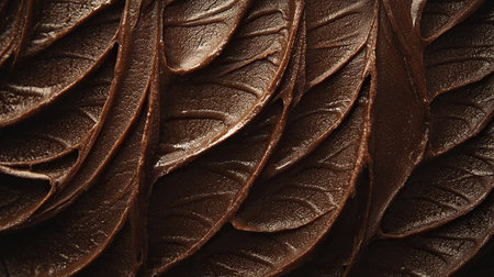 A close-up image showcasing the rich and smooth texture of chocolate frosting, featuring beautiful waves and swirls. Ideal for baking and dessert inspiration.