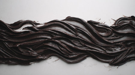 This artistic, creamy texture showcases a rich dark brown color with a glossy finish, perfect for illustrating beauty and cosmetic products in various designs.