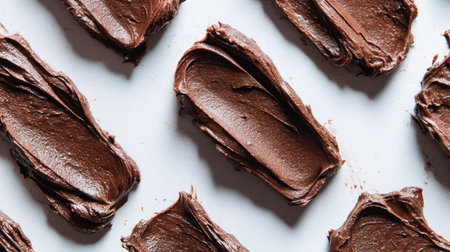 This image showcases an artful arrangement of smooth chocolate buttercream spread on a white background, ideal for dessert decoration inspiration.