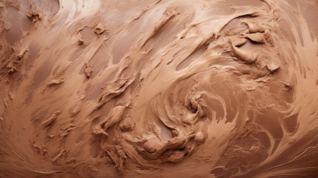 close up of melted chocolate stock art featuring textural surface treatments, soft shading, and organic contours. the aerial view captures the monochromatic color scheme, while the strong contours add depth to the image. this artwork is reminiscent of the style of max weber. ai generated