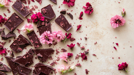 AI Generated. Delicious dark chocolate bars sprinkled with sea salt and coffee beans