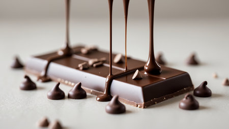 AI Generated. A chocolate bar with chocolate drips and chocolate chips on it