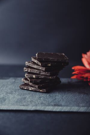 pieces of chocolate on stone plate