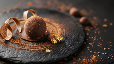 Elegant chocolate dessert on a dark slate plate