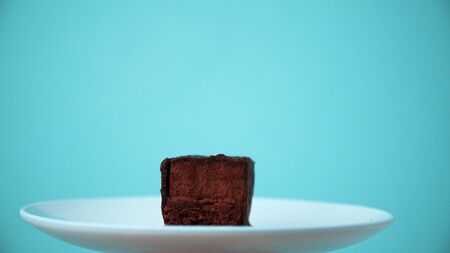dark Chocolate bar in crackd pieces on white plate on yellow floor