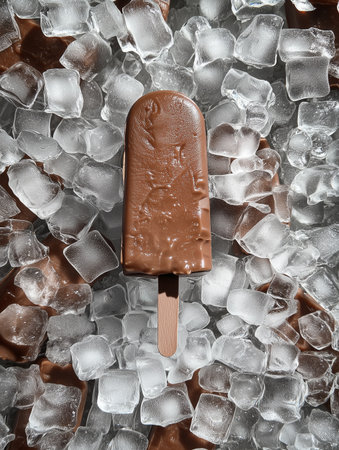 Chocolate Popsicle, Lolly Ice Cream, Dripping Melted Frozen Lollipop, Ice Yogurt Splashes, Copy Space, Generative AI Illustration