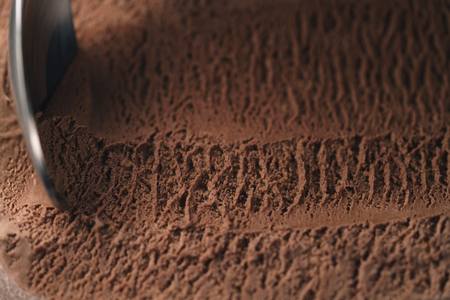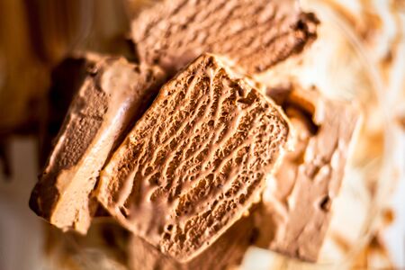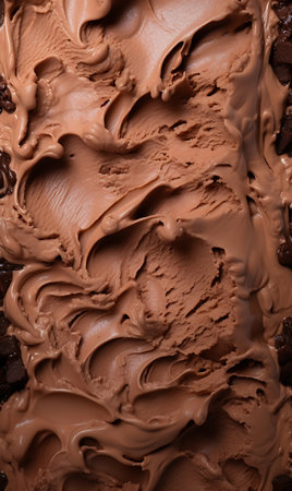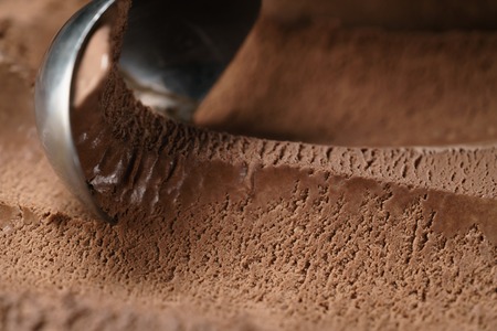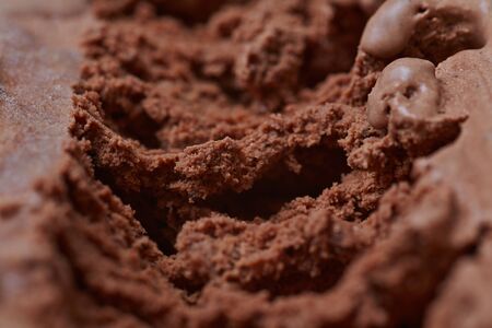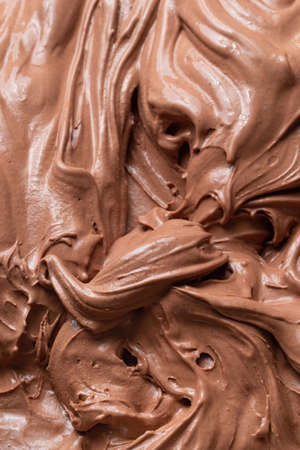 Chocolate flavour gelato - full frame detail. Close up of a brown surface texture of chocolate Ice cream.