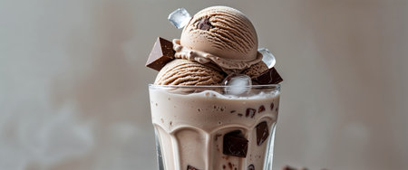 AI Generated. Delicious Chocolate Ice Cream Drink with Chocolate Chunks and Ice Cubes
