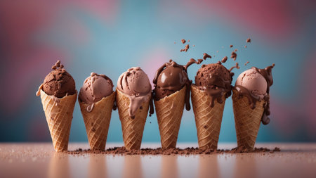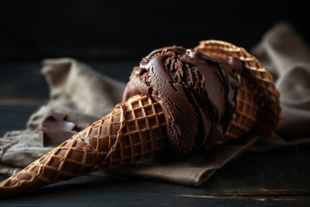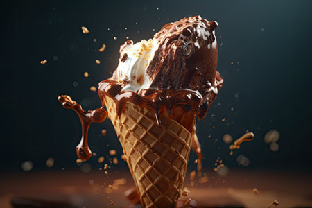 AI Generated. Delicious chocolate ice cream in crispy cones falling