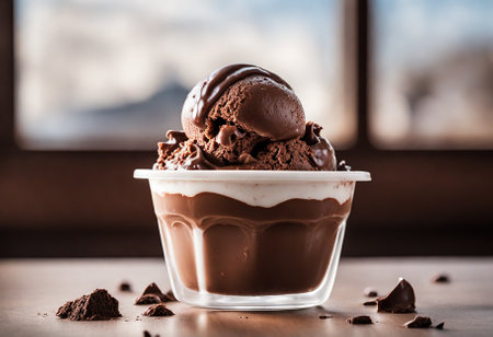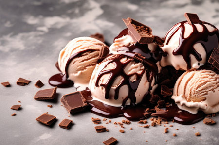 Rich and Indulgent Chocolate Ice Cream Scoops with dark chocolate pieces