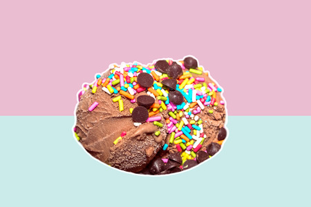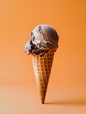 A tasty chocolate ice cream on a peach background.