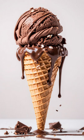AI Generated. Chocolate Ice Cream Cone with Melted Chocolate Drizzle