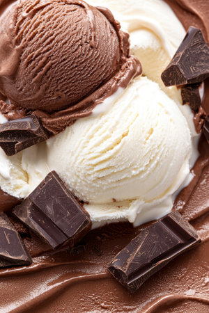 Delicious chocolate and vanilla ice cream scoops