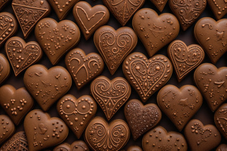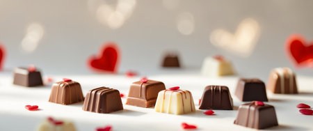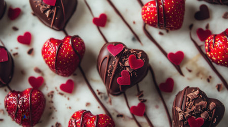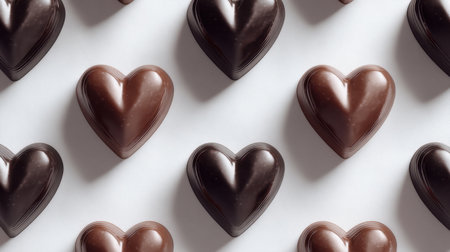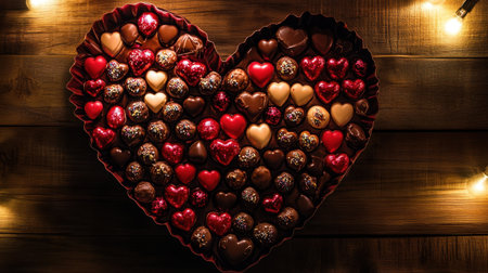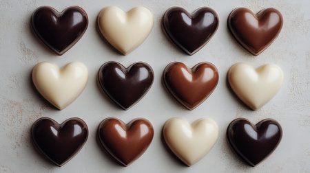 An exquisite arrangement of heart-shaped chocolates in various shades and flavors, perfect for celebrating love, romance, and special occasions like Valentine's Day.