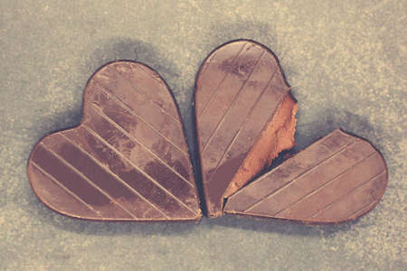 Chocolate hearts on a dark background. Valentine's Day background.
