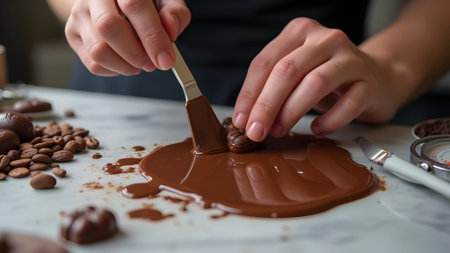 Preparation handmade chocolate candies. Ingredients for making chocolate - cocoa beans
