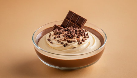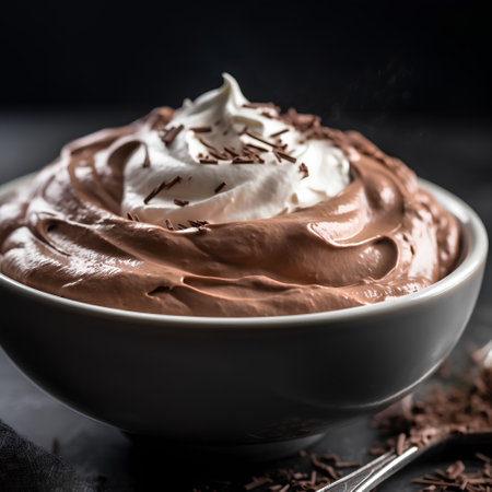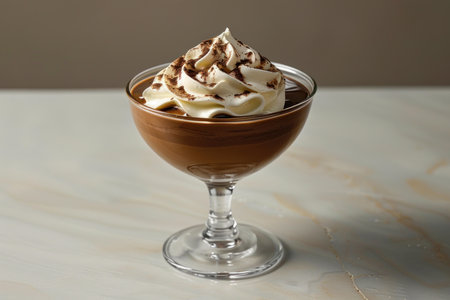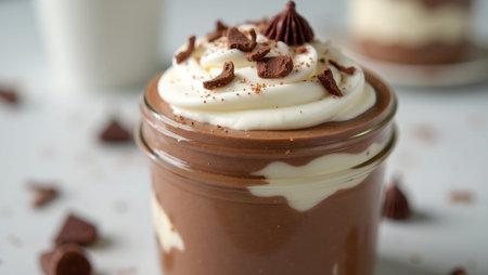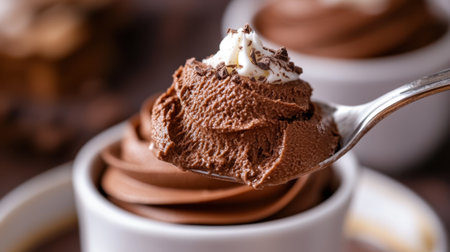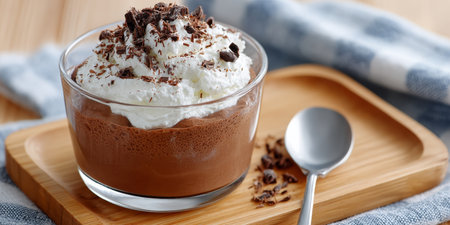 Decadent chocolate mousse with whipped cream swirl