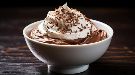 AI Generated. Decadent Chocolate Mousse Dessert with Whipped Cream and Cocoa Powder