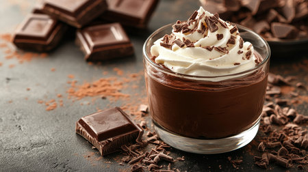 Decadent Chocolate Mousse Dessert with Whipped Cream and Rich Dark Chocolate Shavings on Top