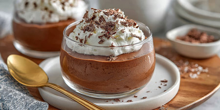 Decadent Chocolate Mousse Dessert with Whipped Cream and Chocolate Shavings for a Sweet Treat